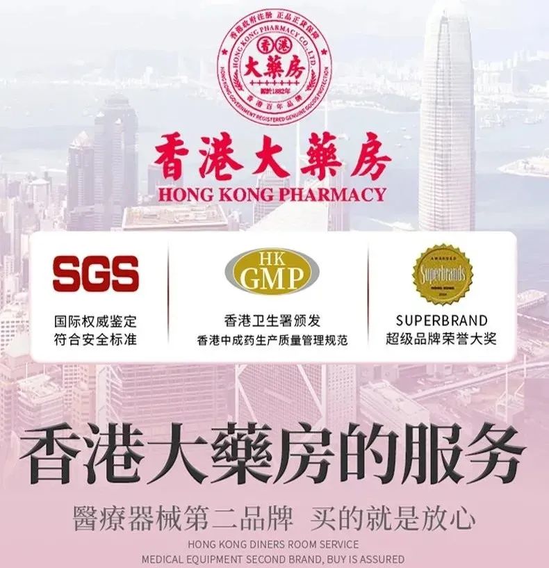 香港大药房在1997年,经香港政府注册许可加入正品正货保障计划,在中成药、美妆、食品等方面有着完备的研发团队。