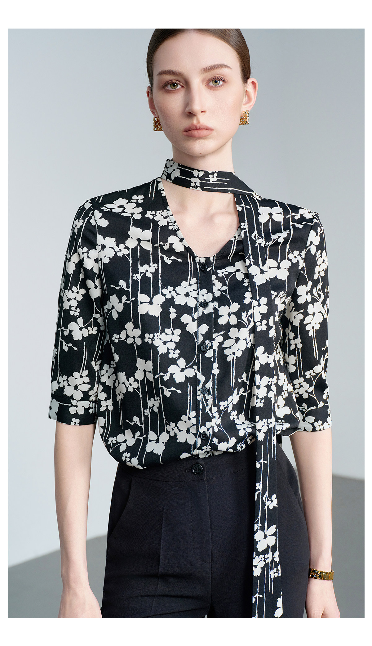 把春日繁花穿在身上,让通勤也充满诗意。这件黑白花卉衬衫,以经典撞色演绎永恒优雅,灵动的花枝印花,为穿搭注入浪漫气息,温柔又显气质。