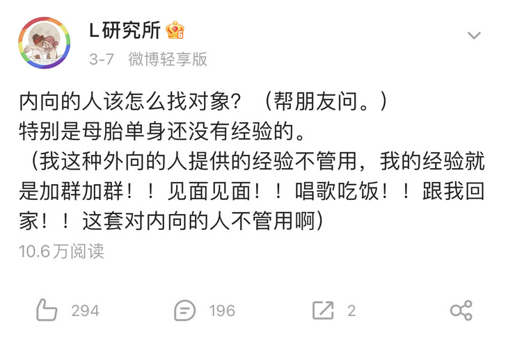 但是本ENFP真的写不出来靠谱的方法,所以将此重任委托给——曾被称为「行走的荷尔蒙」、「很会谈恋爱的」的偏内向人士大娃(INTJ),让她来分享一下,内向人该怎么开始谈恋爱。