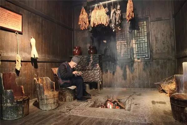 然后是烟熏。腌制好的咸肉,人们会选用柏树枝、甘蔗皮、椿树皮或柴草火慢慢熏烤,然后挂起来用烟火慢慢熏干;或挂在自家烧柴火的灶头顶上、烤火炉上,用烟火慢慢熏干。那种烟熏火燎的醇厚美味,实在让人难以忘怀。