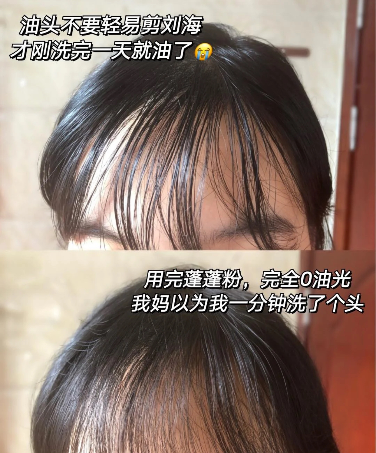 把蓬蓬粉抹在头发油腻处,立马就没有油光啦~