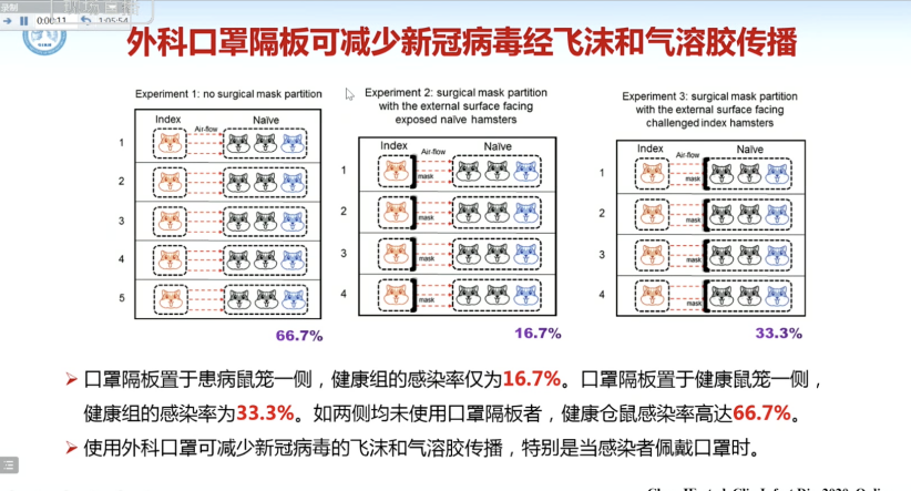 如两侧均未使用口罩隔板者(都不戴口罩),健康仓鼠感染率高达66.7%。