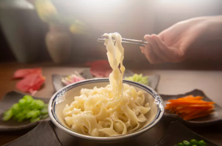 4.手擀面或红薯粉下锅煮熟盛入碗中