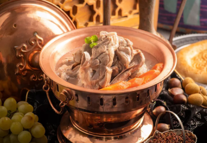 1.卤羊肉加热切成厚片备用