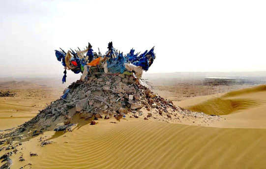 屹立在沙漠中的百年敖包也为仓央嘉措的