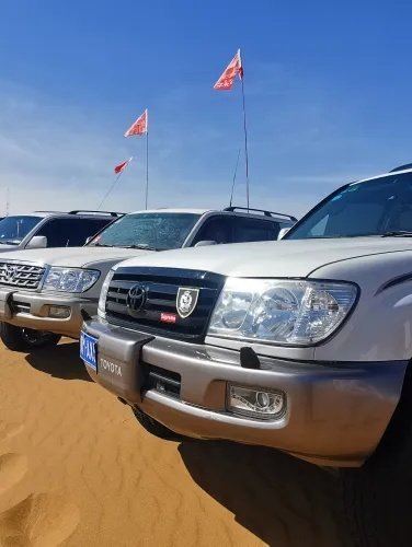 车辆:全程豪华旅游巴士、沙漠随队保障越野车1:20、物资卡车1:40、外围后勤保障车