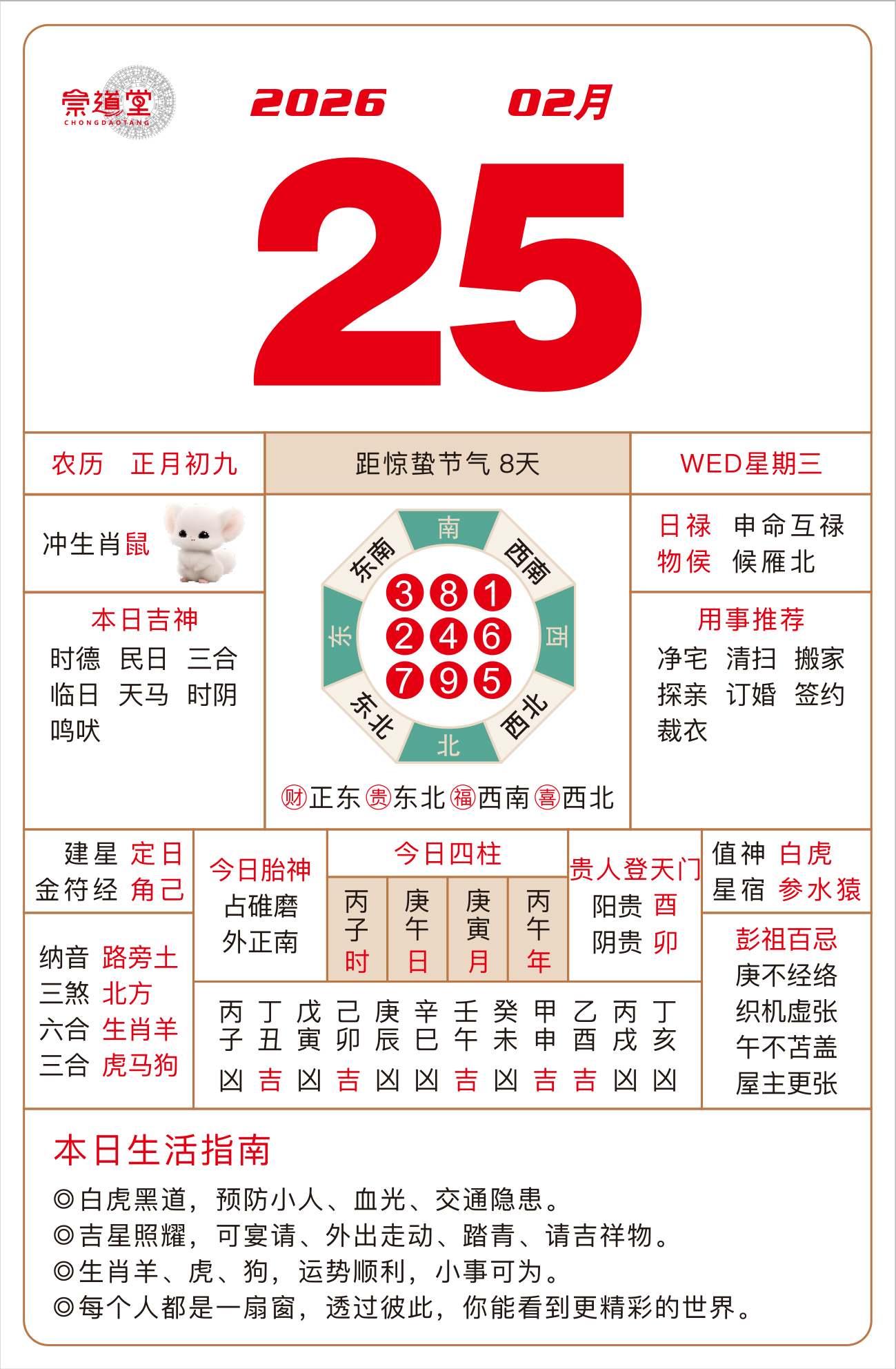 2026年3月8日 农历正月二十 辛巳日 冲猪