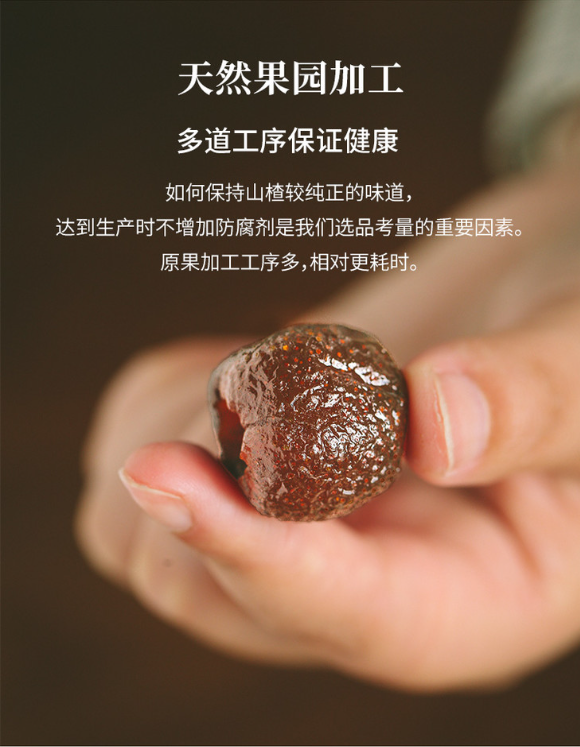 因此,我们苦心研制了一款不加蔗糖的“空心山楂”,非常适合作为长期补充营养,开胃消食的小零食~