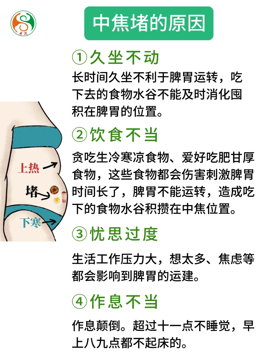 ✅夏秋换季,警惕上寒下热,中焦不通现在的人因为久坐不动,饮食油腻不规律又经常熬夜等,脾胃虚弱运化湿气能力弱,久而久之就导致了上热下寒!