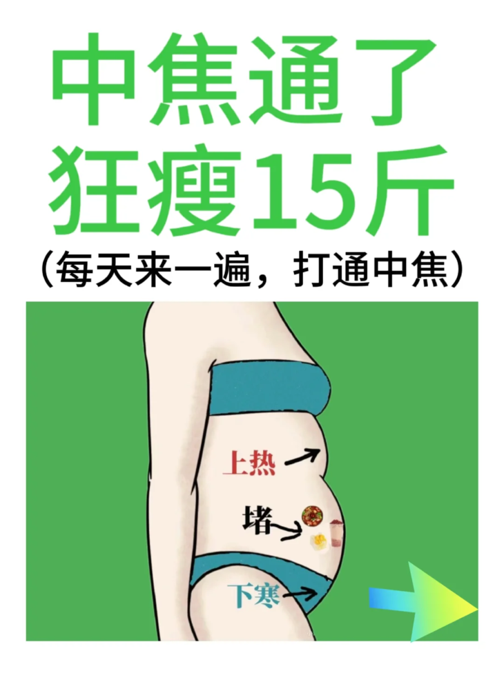 中焦淤堵,身体代谢直线下降,所有正在减肥减脂的姐妹划重点🔺中焦通了轻松瘦!