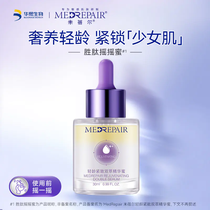 华熙生物集团旗下——米蓓尔MEDREPAIR,源自华熙生物多年潜心研发,“精于修复,专注美丽”为消费者解开敏肌密码,4D-HA四重活水创专利配方取代市场主成分,提供解决敏肌问题的方案。