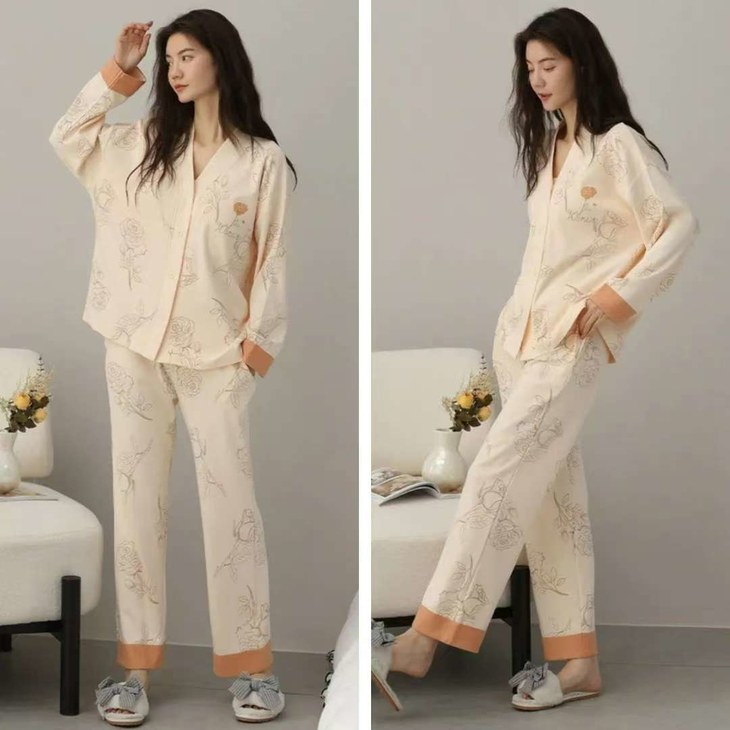 作为适合早春的一套家居服,它厚度刚刚好,亲肤透气,有温度但不闷热。