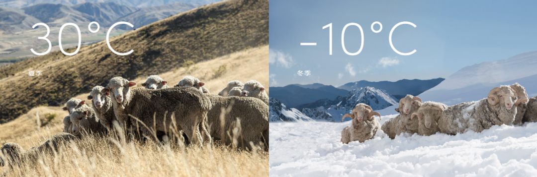 超轻羊毛最核心的功能,不是保暖,而是调节体感温度,保持身体表面的恒温。所以穿超轻羊毛的衣服,就像身体的第二层皮肤一样,冬暖夏凉。