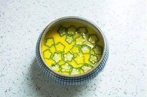 食材:秋葵3个/鸡蛋2个/适量调味料/适量清水