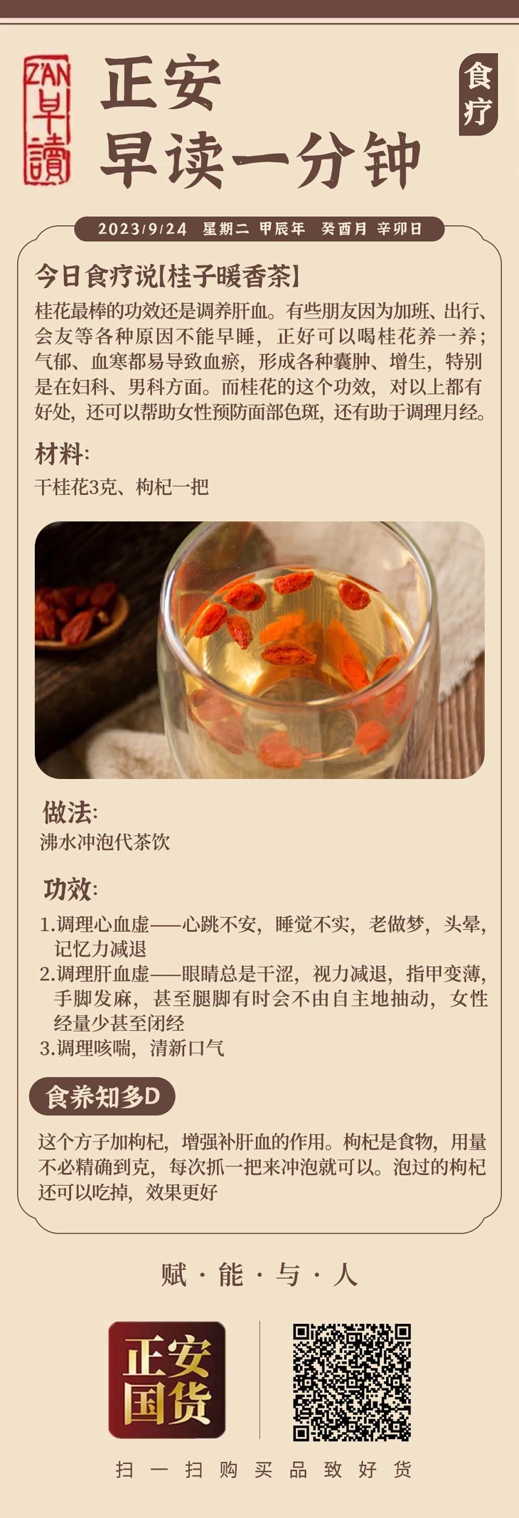 9月24日 应季食方【桂子暖香茶】调养肝血