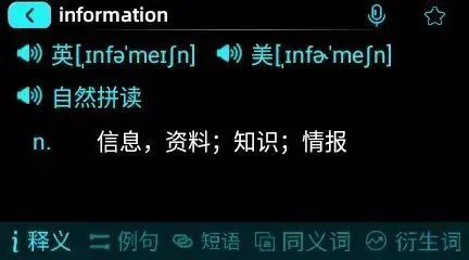 翼呀智能学习笔具有【智能扫读】功能,只需要用笔尖对着生词轻轻一扫,0.5 秒内自动播放单词读音,随即查看单词音标、释义、例句、短语、同义词、反义词、时态等内容,自主学习词汇无压力。