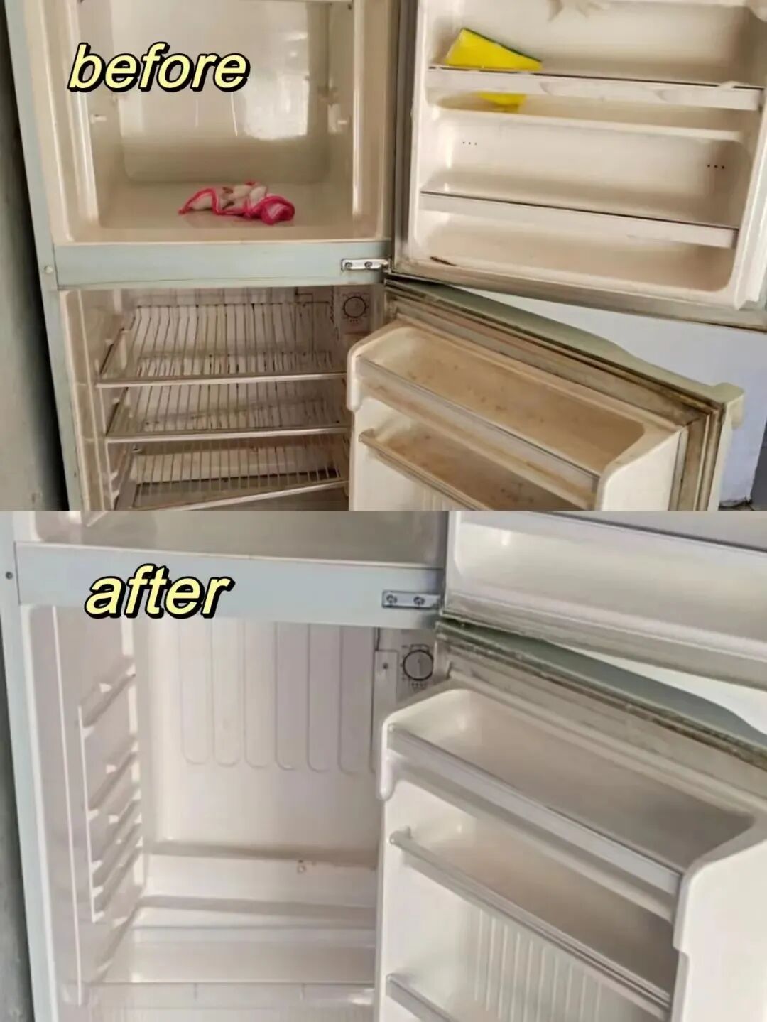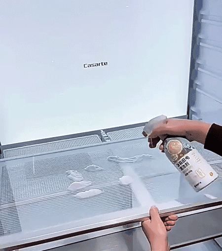 像冰箱里的污垢,闻起来还有一股恶臭,喷上互家后,一抹就干净,擦掉就像重新焕发生机一样~