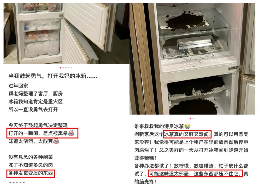 尤其是冰箱,明明没放有味道的食物,看着也还挺干净的,一打开却总有股奇怪的异味。
