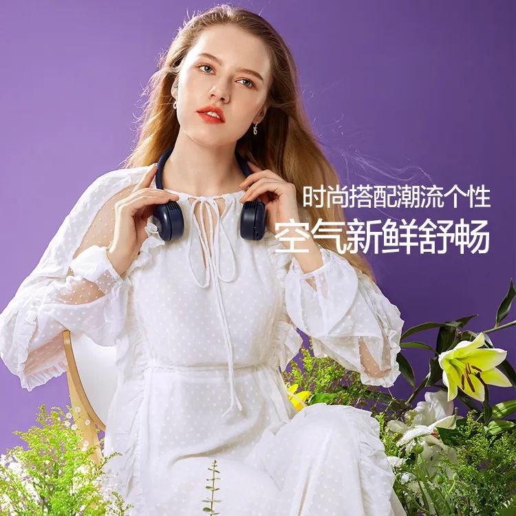 颈带部分使用了硅胶材质,非常软,戴在脖子上非常舒服、亲肤!可随意旋转、弯曲,360° 调节风向,哪里热就吹哪里~