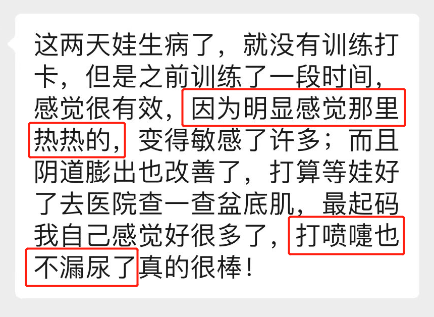 正确训练一个月后,秘密花园的滋润度有所提升,感受到温热感,夫妻生活的体验也更舒适了!