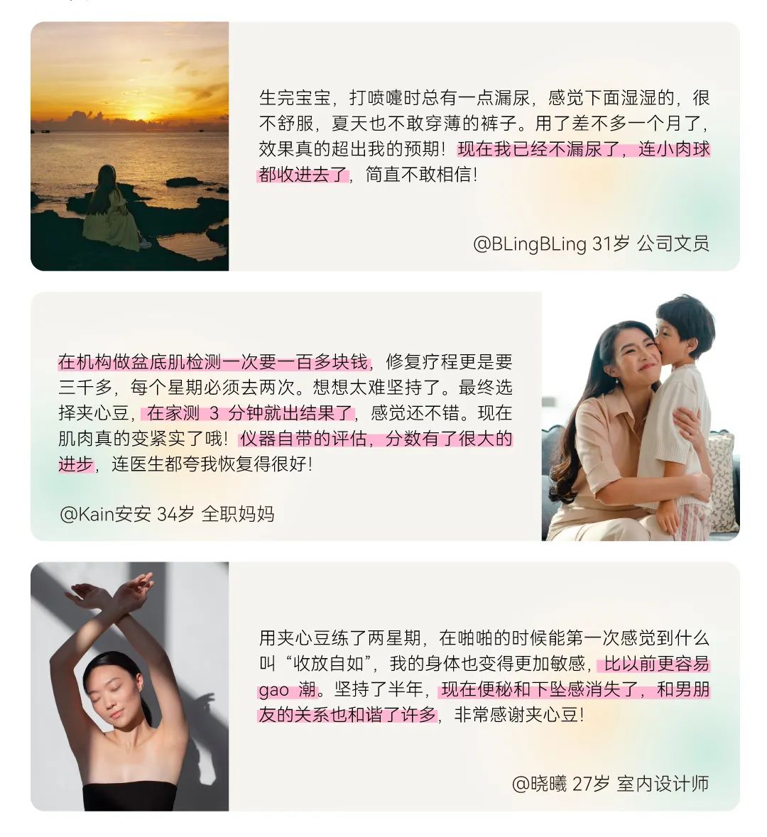 在和用户沟通的过程中,她们发现,不少姐妹由于产后盆底肌受损,导致夫妻生活不和谐,甚至婚姻亮起红灯。