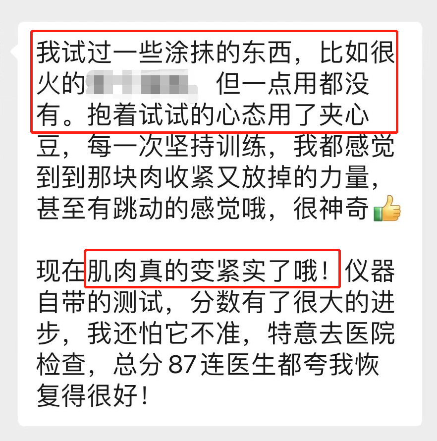 在训练的过程当中,很多女性感受到了前所未有的愉悦感,而且以前的干涩、松弛、漏尿的状态达到了明显的改善!