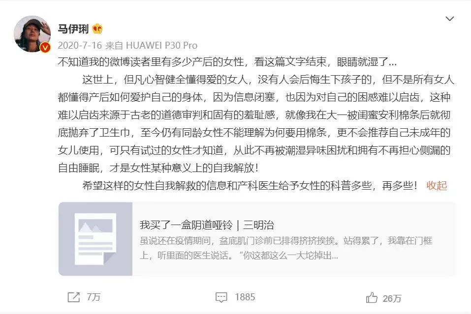 在圈内所有女星都提“性”色变的时候,她直接转发了一篇说阴道哑铃的文章,并含泪写了一大段长文: