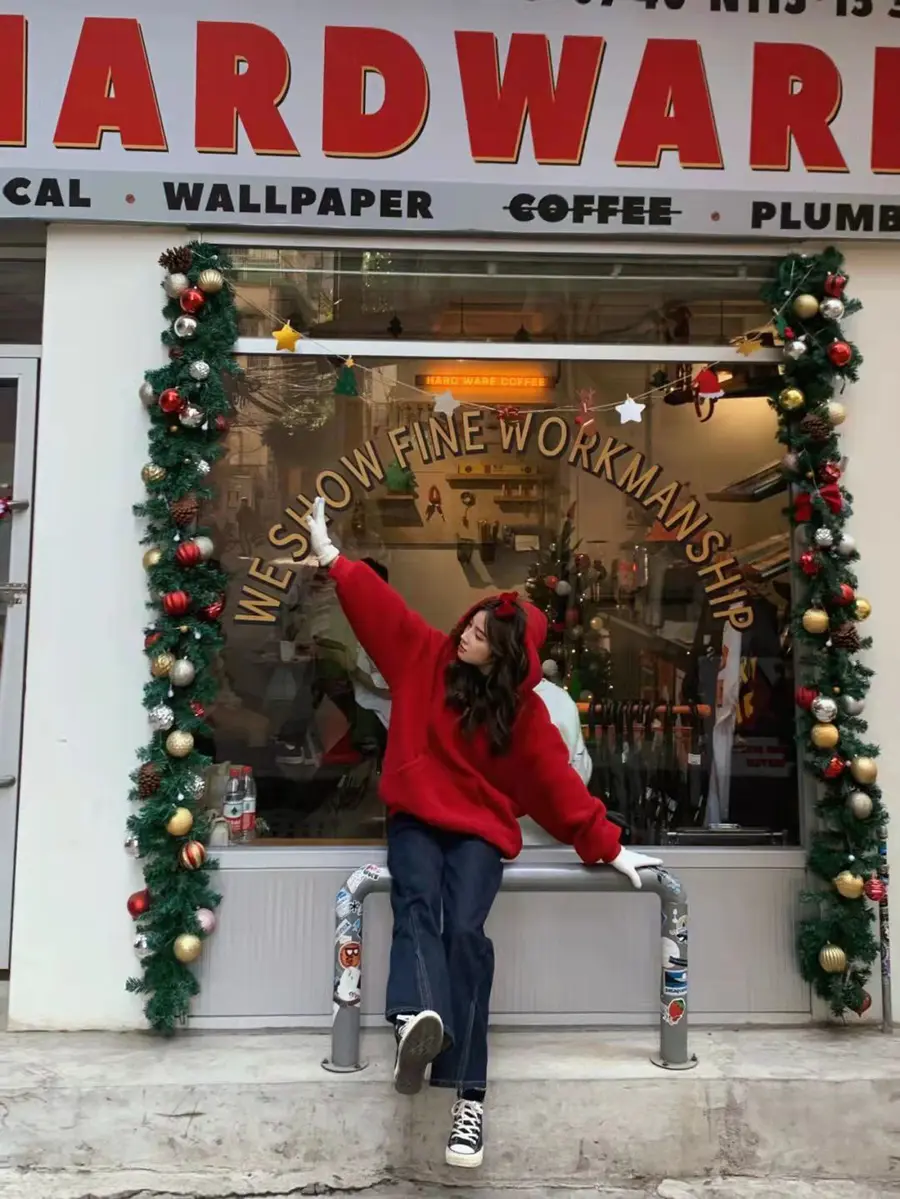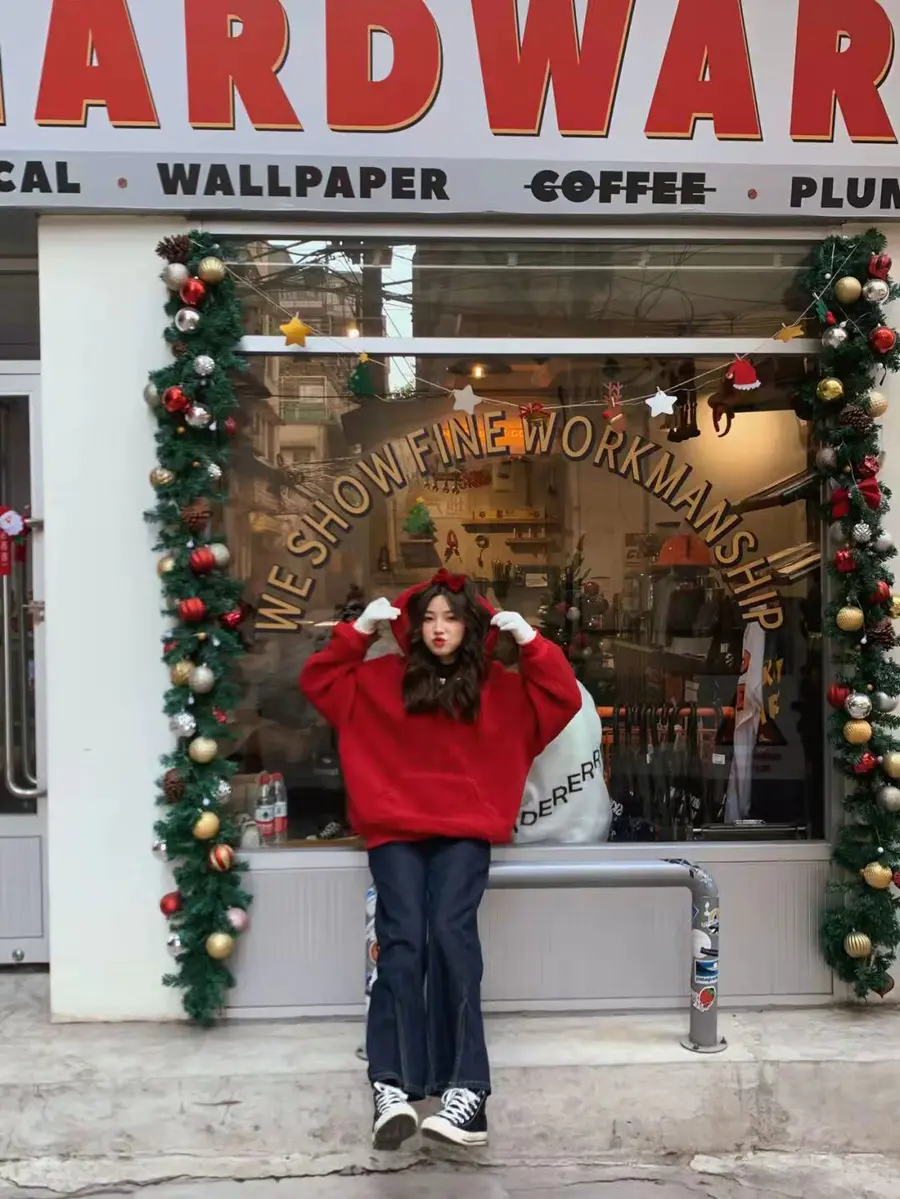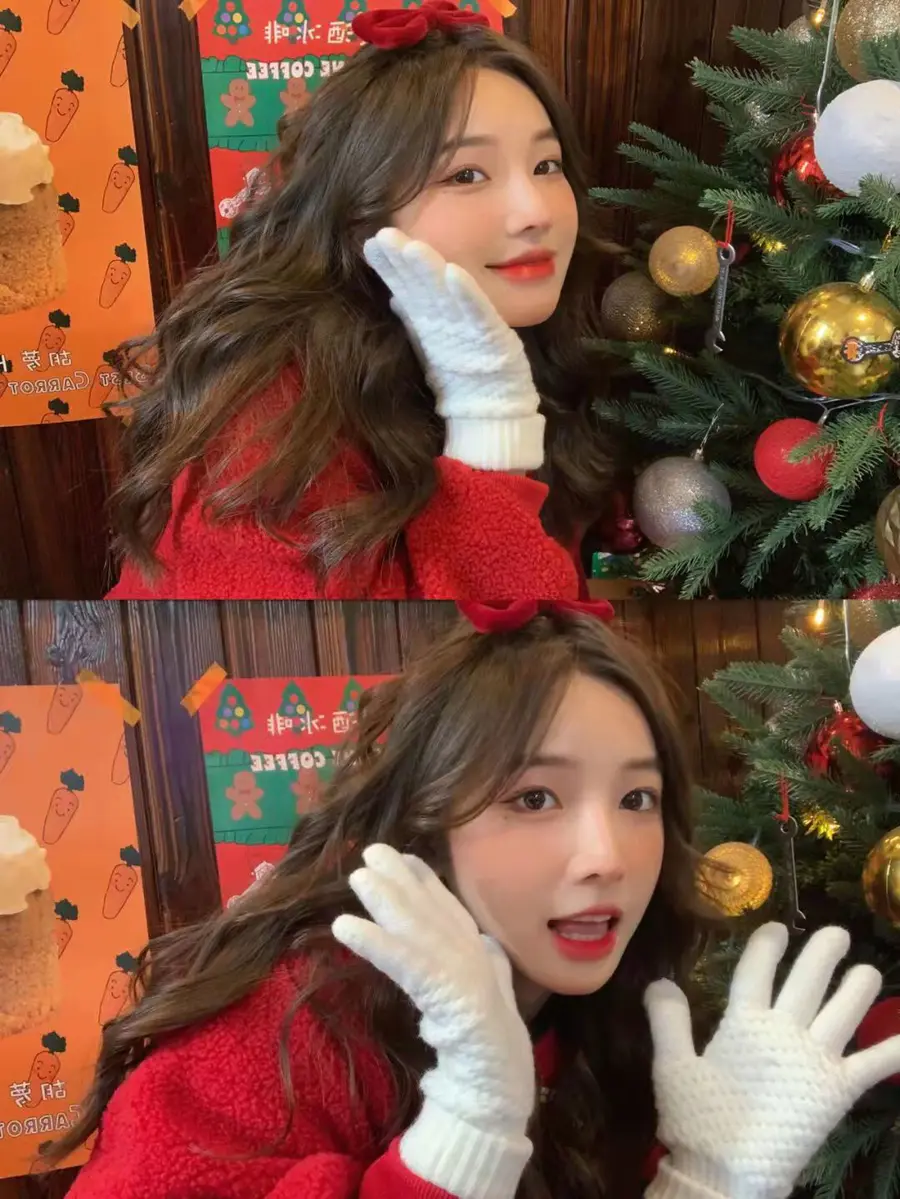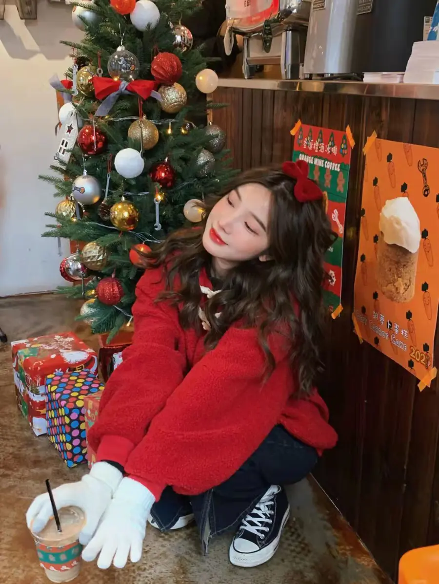 既然要和圣诞树合照🥰那穿搭当然要带点红啦
