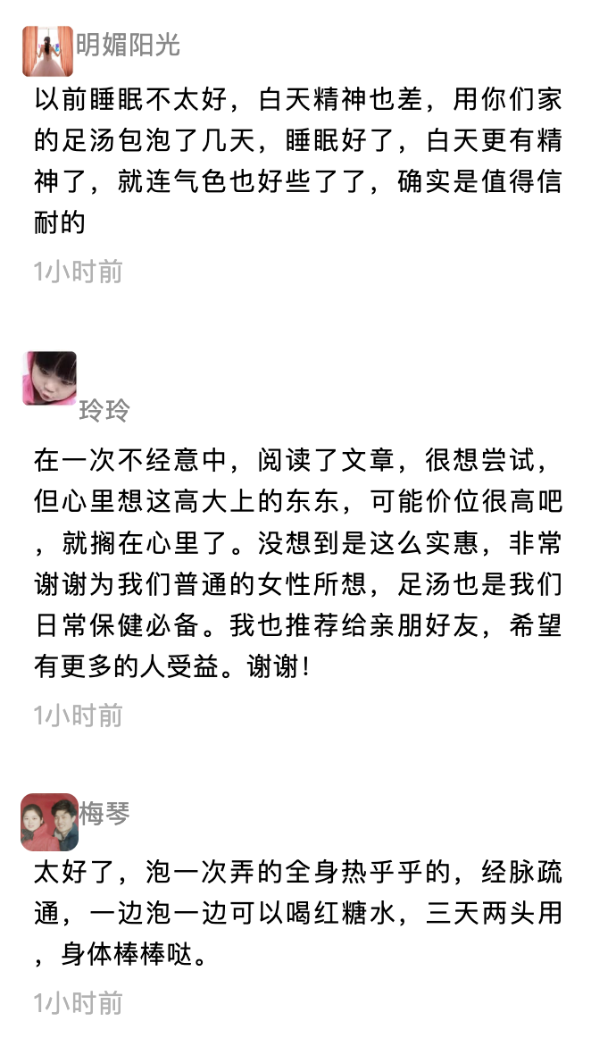 廖女士高兴地说:“老公和孩子回家,也愿意跟我说话了!月经也正常了、白带变得清澈透明,异味没了!现在给老公也泡上了,老中医说,这个东西对男人补肾也特别好”!