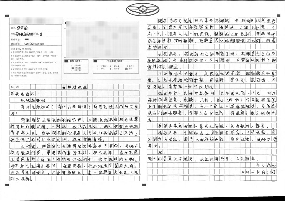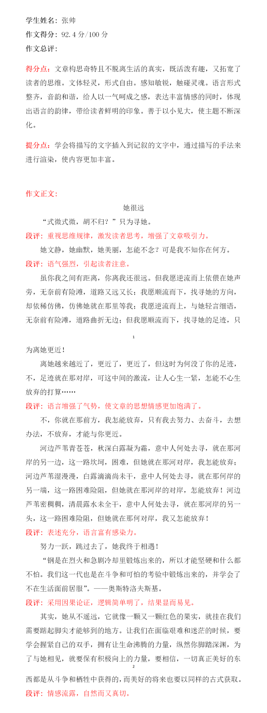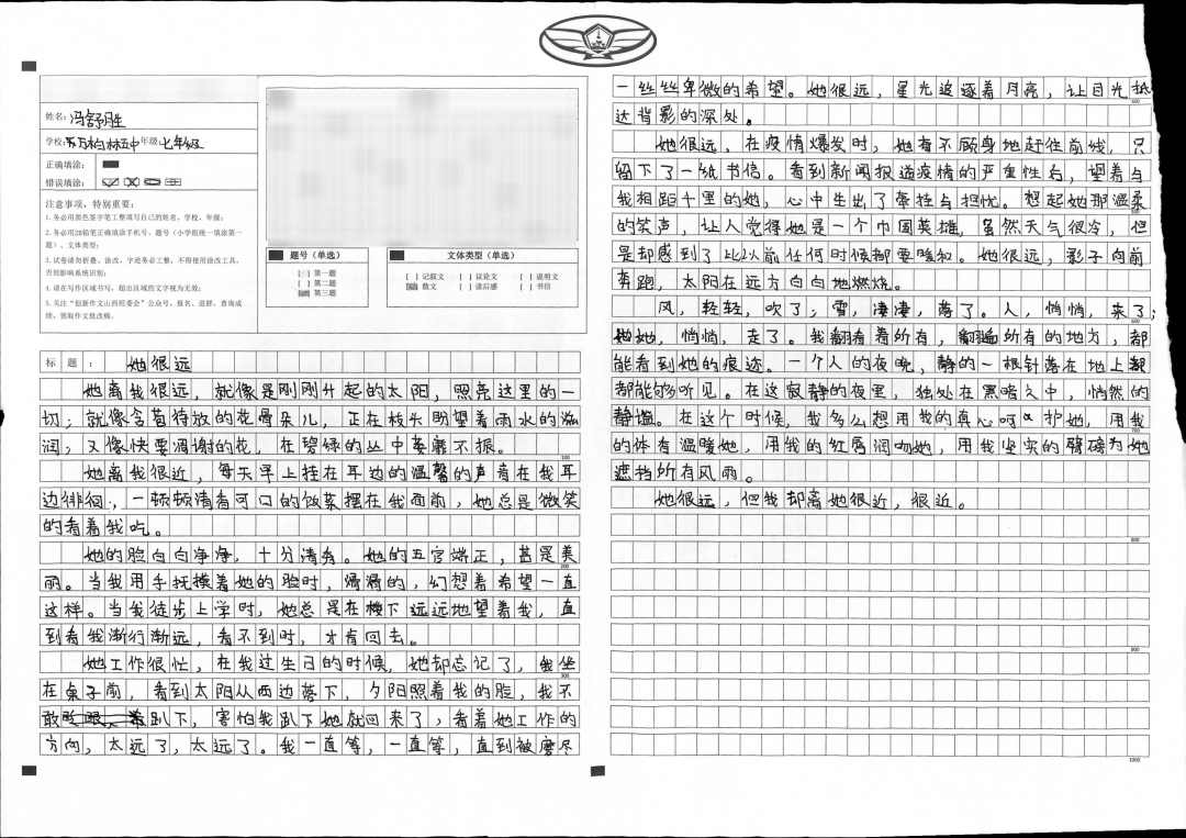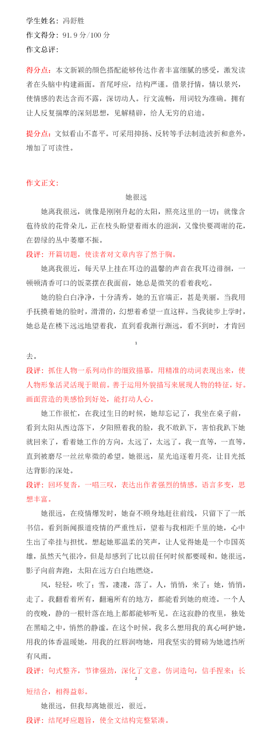 孩子上小学后,就开始摘抄好词好句。从看图写话到作文提高,都离不开好词好句的辅助。在小学时,她所写的一些好作文会被老师投放在投影仪上展示。 子上初中后,每天会读几篇作文。里面有记叙文,议论文,说明文等。正是这个习惯才造就了每次作文都会拿到较高的分。 希望孩子今后可以稳步前进,让成长的足迹点缀亮丽的缤纷!