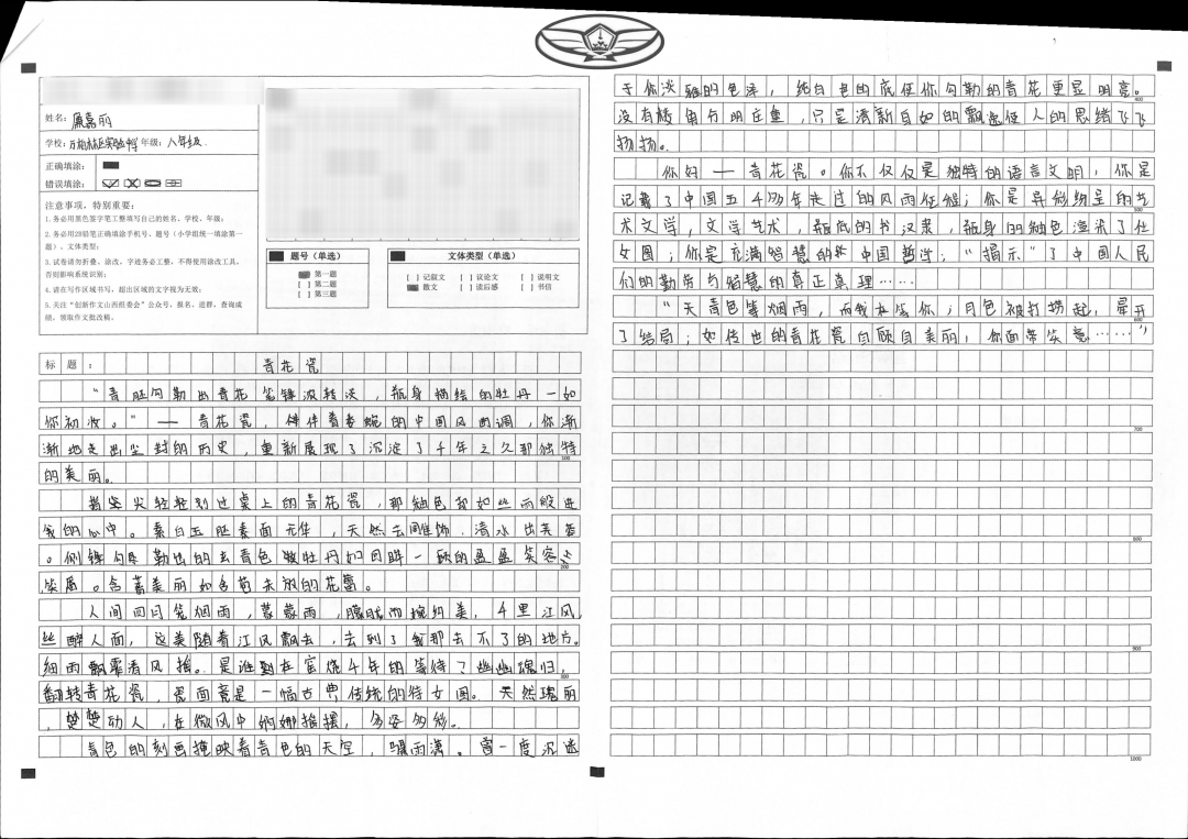 在写作文时,我认为青花瓷是个很好的选择,它不仅作为一种寻常器物而存在,还让我融入了我的个人情感。“天青色等烟雨,而我在等你”,每次听到这句歌词都会有一种心领神会的冲动。在写青花瓷时,看了不少照片,它的美让我感觉意蕴幽眇。这样的青花瓷让我细细慢品,才写出来今天的文章。