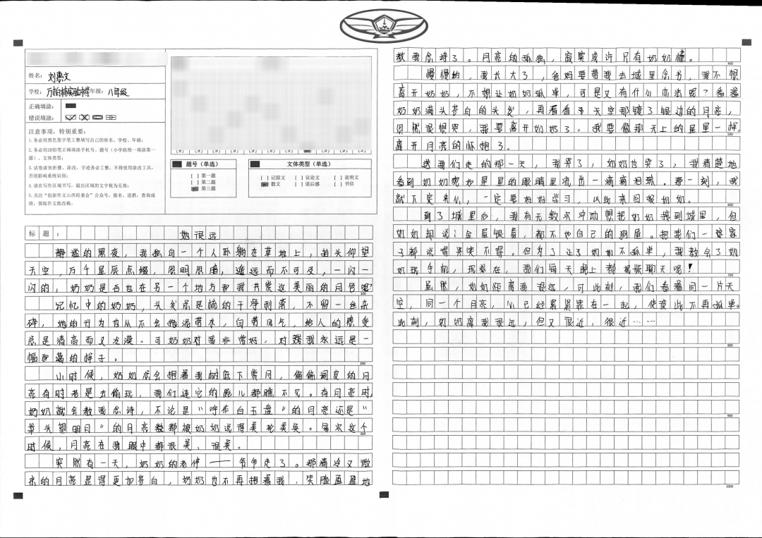 都说陪伴是最长情的告白,而家人便是你我唯一的依靠。当我看到这个题目的时候,脑海里便不自主的想起奶奶的身影,想把我和奶奶故事写下来,在过程中我也想了很多,近几年,学业繁忙,很少时间与奶奶通话了,想到以前与奶奶那快乐的日子,我便十分怀念,想把这段回忆写下来,这段回忆将伴随我的一生,我也会带着家人的期望和对未来的期待来勉励自己,如名人王源所说的那样:“哪怕我只有30%的天赋,也会投入70%的努力,做百分之百的自己。”