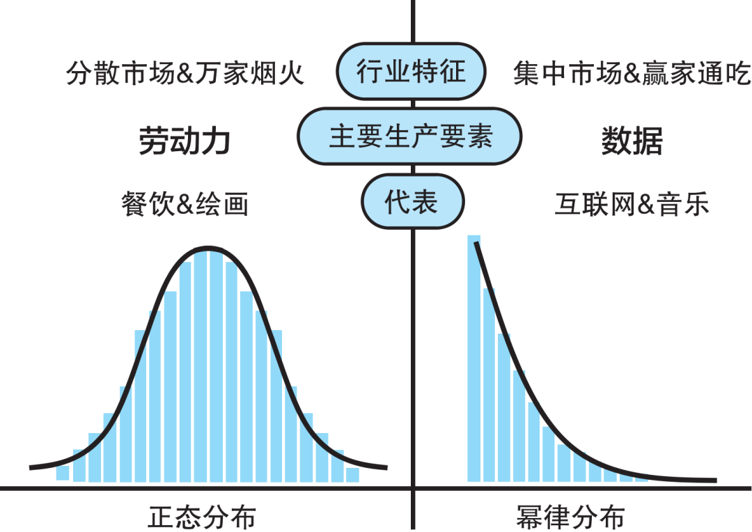 这是一个非常重要的战略选择。在数学规律的作用下,餐饮业,符合正态分布,而互联网,符合幂律分布。