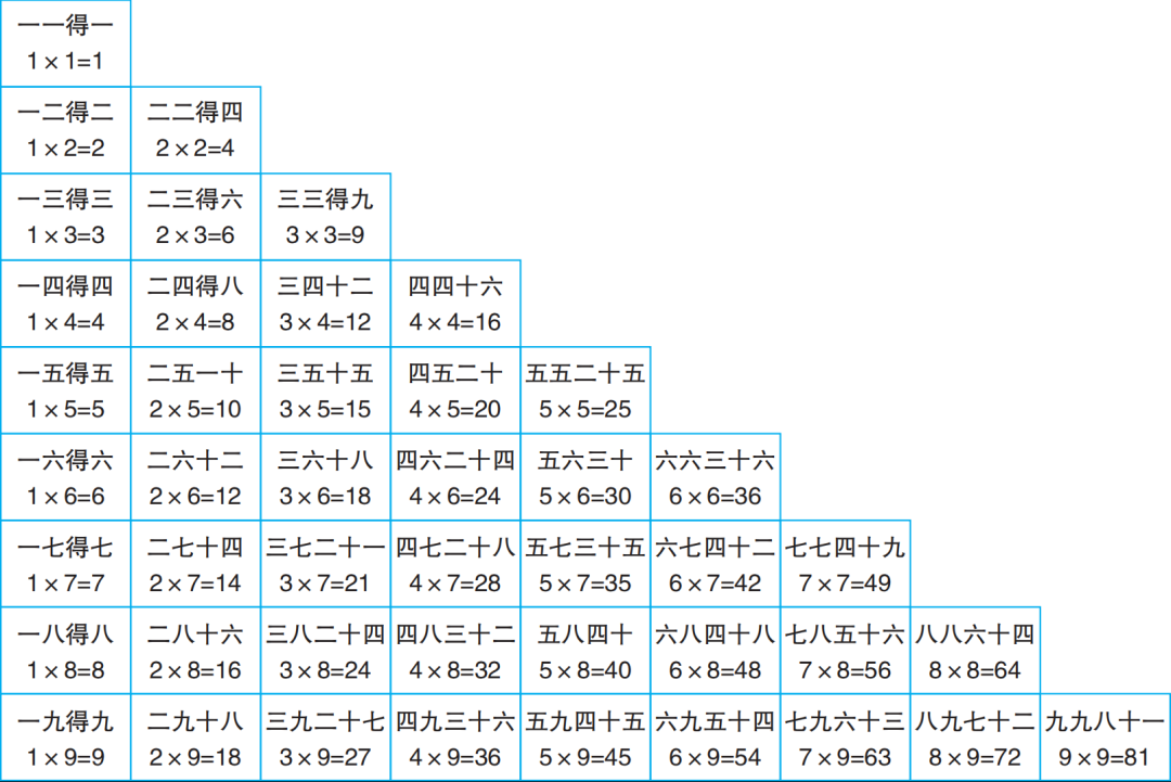 我们所有关于乘法的计算,都是建立在熟练背诵九九乘法口诀的基础上。