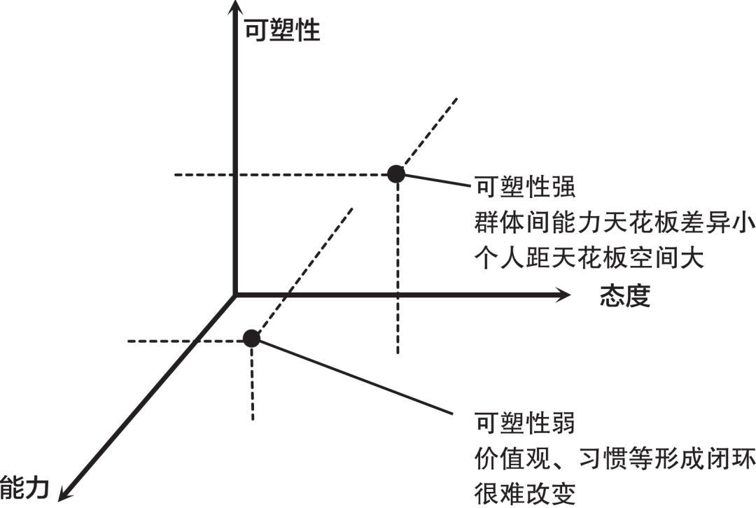 这时,我们就需要继续升维思考。在态度、能力两个维度之上,引入第三个维度:可塑性。