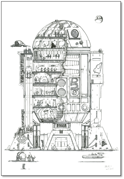 《BB8的旅行》单张 14.7x10.5cm 纸本,墨,马克笔
