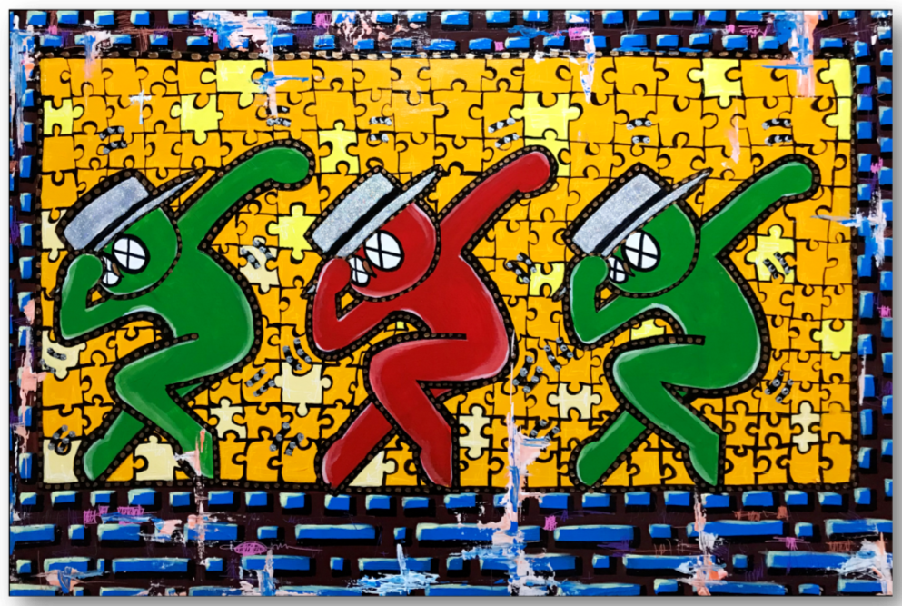 WAIWAI一直在通过自己的绘画风格和视角去诠释一些社会话题与人物,在剥离掉他们既定视觉与文化符号后,通过波普与街头的风格所呈现出来一种荒诞的抽象视觉效果。我们很难去界定他的作品好看与不好看的表述方式。