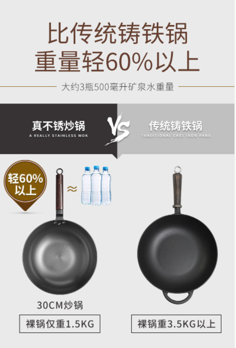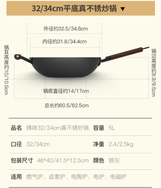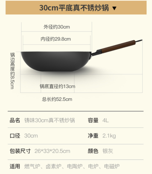 符合上面的基本需求的,也只有是铁锅..对比许多个铁锅,最后敲定了这一款铸味真不锈炒锅