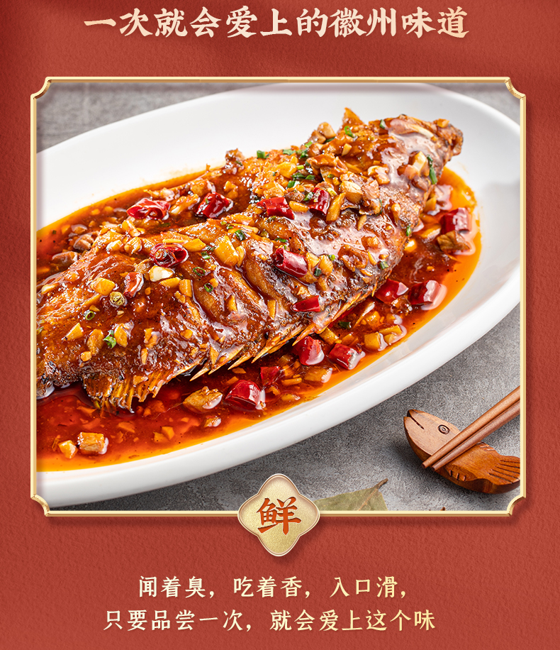 将腌制好的鱼儿入油锅略煎,放入辅料浓缩汤汁,便是徽菜中的压轴名菜——“臭鳜鱼”。