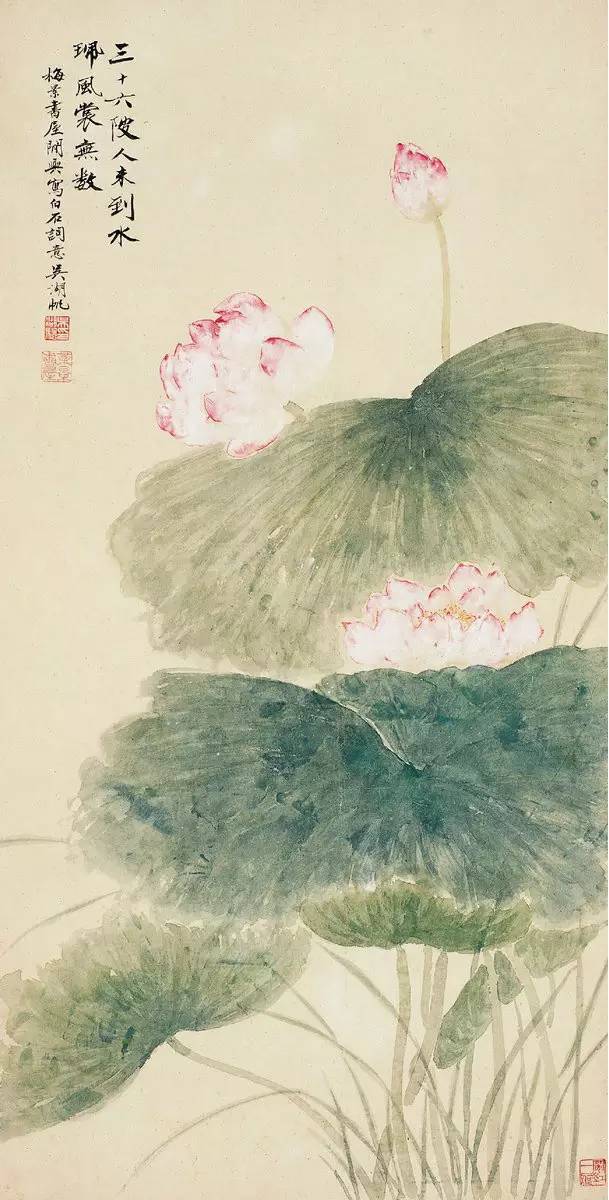 吴湖帆的没骨法“吴装荷花”雍容艳雅,无与伦比,堪称画坛独步。