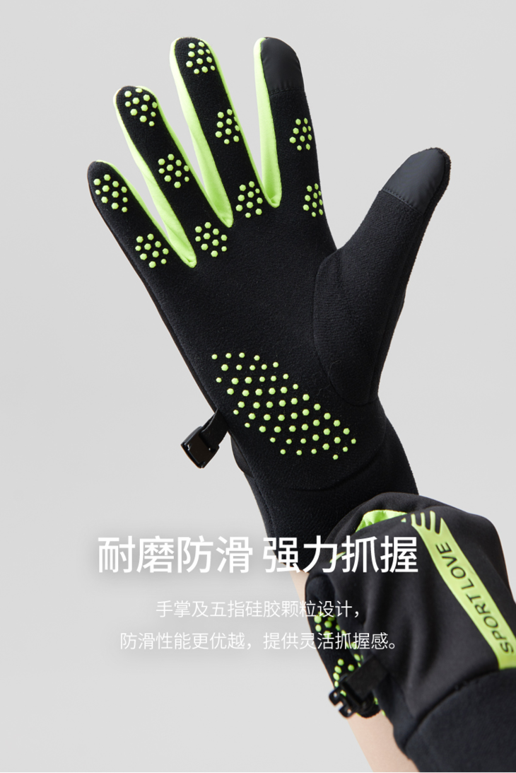 手掌及五指处专门用了硅胶颗粒设计,抓握不打滑,骑行开车滑雪更安全。