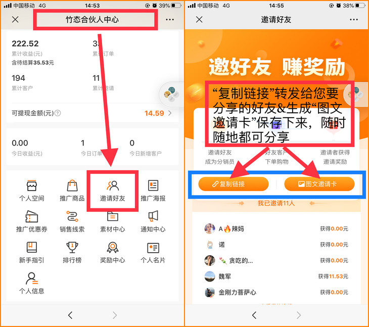 进入店铺,点击个人中心→竹态合伙人中心,根据下面截图操作就好啦!