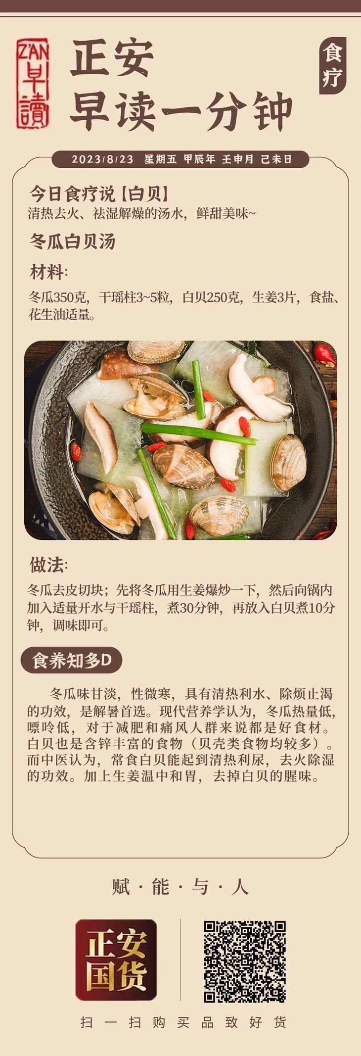 8月23日 应季食方【冬瓜白贝汤】祛湿解燥