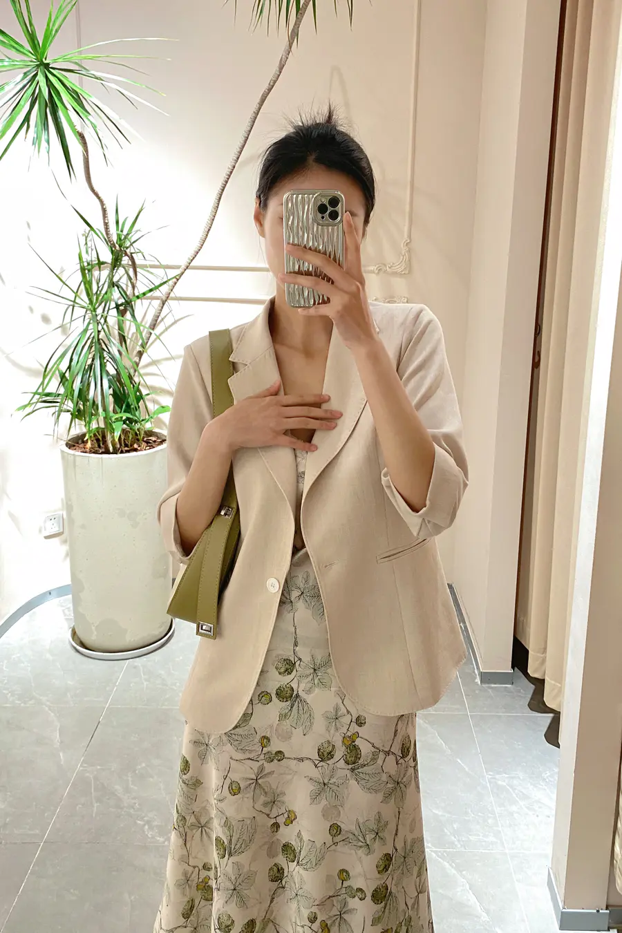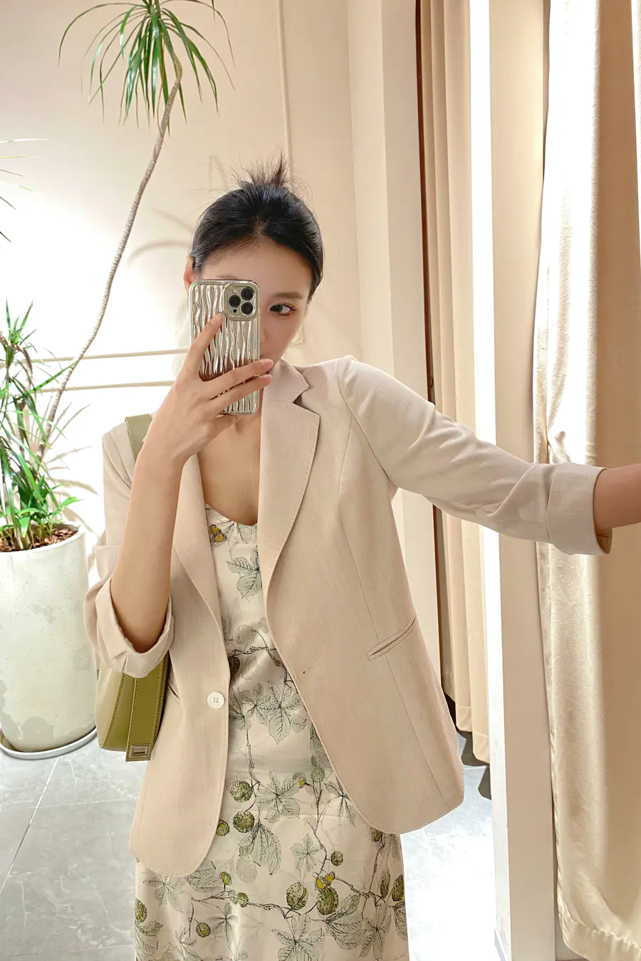 利落剪裁 ➕碎花吊带简直绝配! 西装推荐 # 真丝吊带裙#