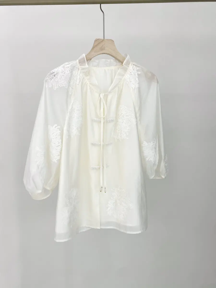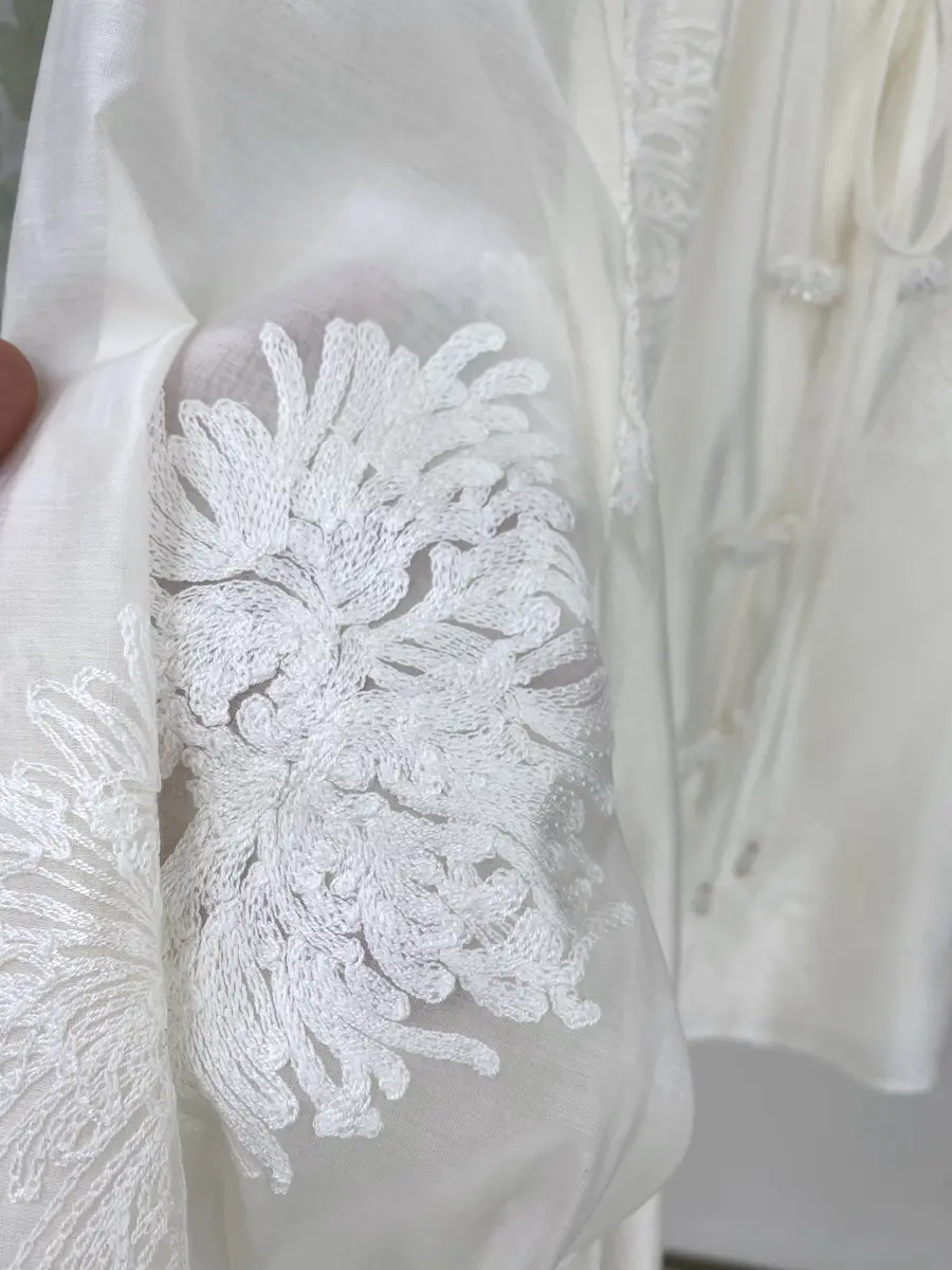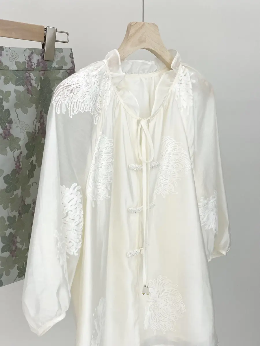 花叶朝云小衫,采用重工的花卉刺绣天丝面料,自带花卉刺绣肌理,别致又精致