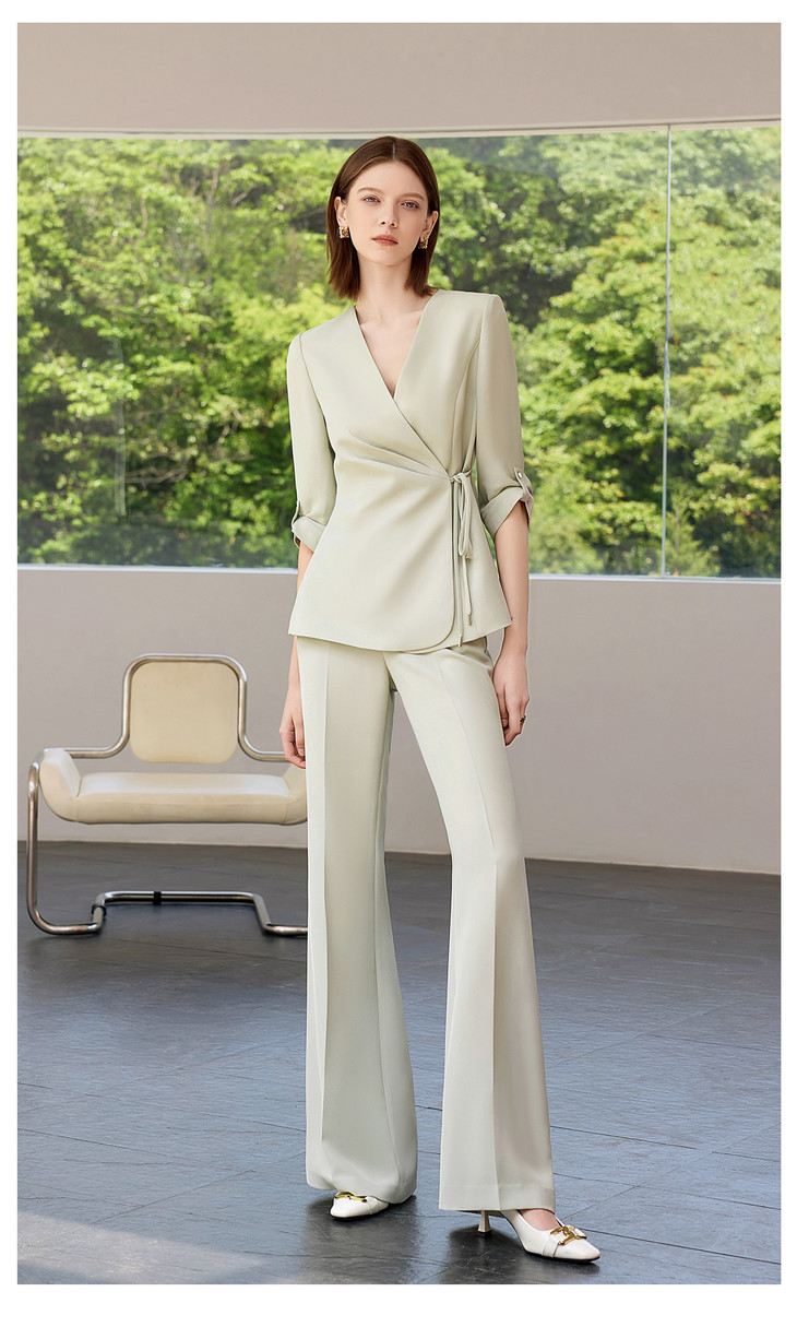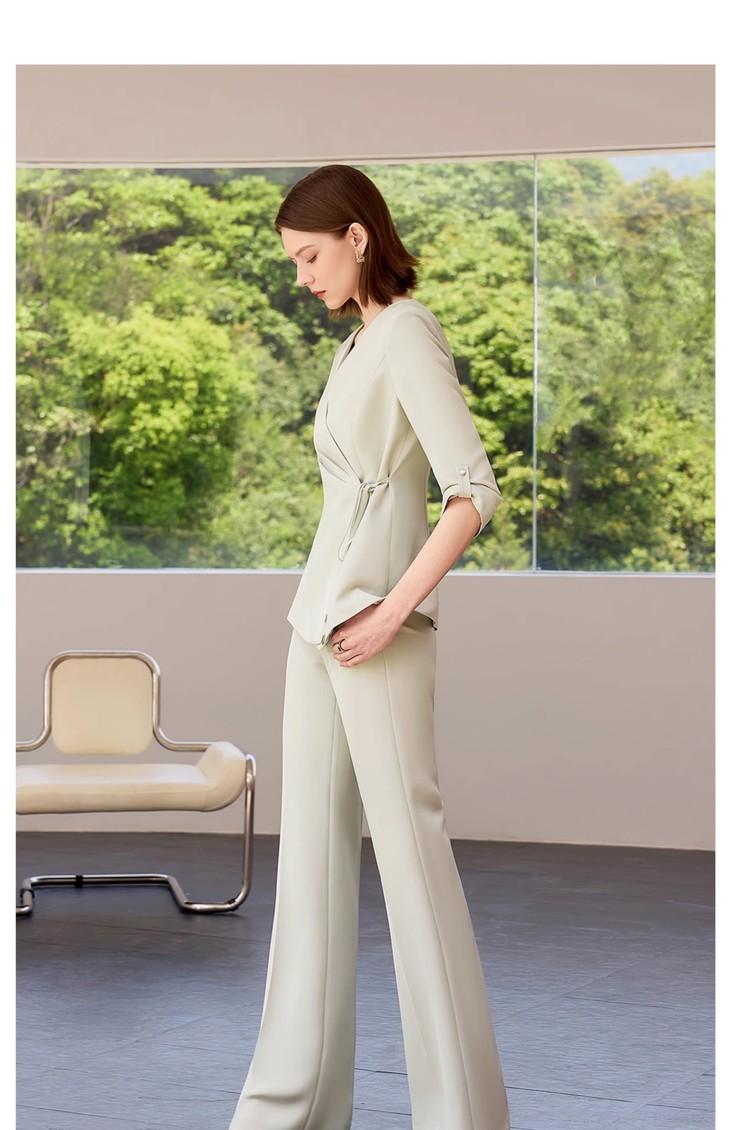 下身直筒西裤,贴合臀部与腿部曲线,拉长腿部比例,轻松打造大长腿视觉效果。无论是日常通勤、商务洽谈,还是重要会议,都能助你气场全开,展现自信从容的总裁风范。