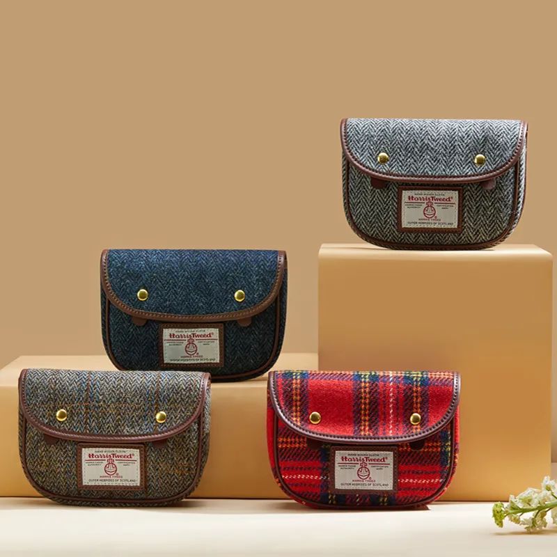 他们家包包的特别之处,就在于它特殊的粗花呢面料上。 用的是哈里斯粗花呢(Harris Tweed),名副其实的英国贵族面料。