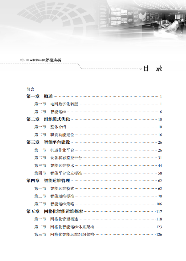 在电网企业数字化转型的背景下,本书探讨了智能技术在广东电网有限责任公司韶关供电局的应用模式与方法,并从组织、技术、管理三个维度,全面系统介绍了智能运维的实践经验。在组织方面,通过优化组织模式、建设智能班组和界定工作职责,构建了适用于智能运维的创新组织模式。在技术方面,介绍了机巡作业平台和设备监控平台功能,为智能运维管理提供了强有力的技术支撑。在管理方面,制定了管理标准和管理策略,明确了智能运维的管理方法和要求。此外,本书还介绍了韶关供电局在输变配一体化模式下的智能运维探索。