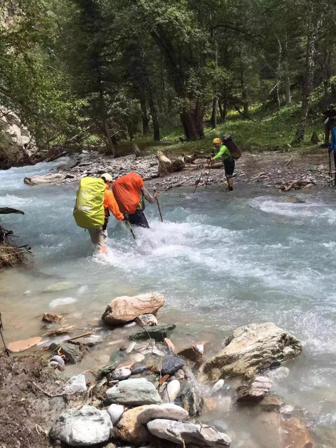 在登山实践中,山友会对装备有更深入的了解。图为乌孙途中过河的山友。摄影:珠玑
