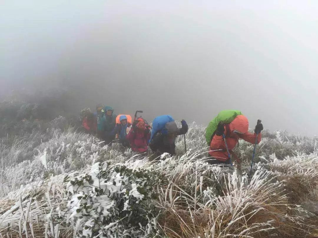 复杂的户外环境需要繁杂的装备,山友在出行前最好进行清单比较。图为位于亚热带地区的船底顶出现霜冻。摄影:珠玑